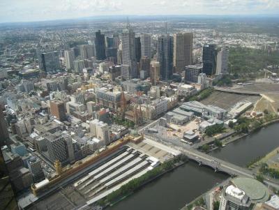 Die Aussichtsplattform des Rialto-Hotels hat mit dem neuen Eureka Skydeck Konkurrenz bekommen. Dies ist mittlerweile die hoechste Aussichtsplattform (der suedlichen Hemisphere) in Australien.