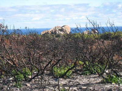 Leider sind grosse Teile der Nationalparks auf Kangaroo Island vor drei Monaten bei den Buschfeuern zerstoert worden. Die Stimmung ist dann immer etwas gedrueckt wenn man zig Kilometer durch schwarze Waelder faehrt. Positiv ist, das sich die Natur nach diesen Feuern so in ca. 5 Jahren wieder regeneriert hat.