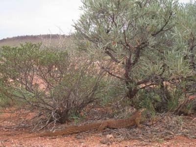 Auf der Fahrt zum Campground gab es natuerlich wieder die ueblichen "Wegelagerer"; Kangaroos, Echsen, Voegel ... und hier noch ein besonderes Exemplar: