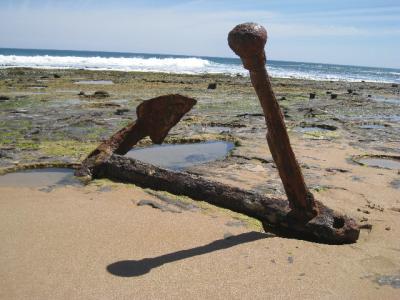 Weiter gings zum Wreck Beach wo heute noch die Anker (incl. Ankerwinde) von einem vor ueber 100 Jahren gestrandeten Segelschiff liegen.