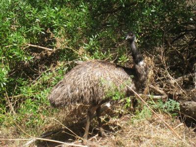 Trotz der Hitze und der spaerlichen Vegetation fuehlen sich die Emus hier scheinbar sehr wohl ... wir haben einige gesehen.