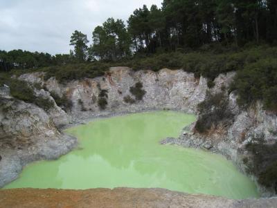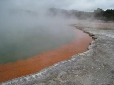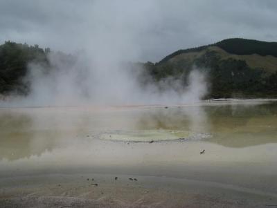 Rotorua ist ein geothermisch aktives Gebiet (d.h. es riecht nach Schwefel und ueberall steigt Dampf auf). In einigen Gebieten gibt es Geysiere und heisse Quellen, die auch fuer Thermalbaeder genutzt werden.