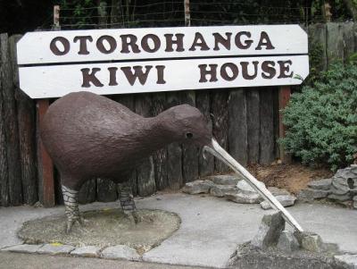 Weiter ging die Reise zu einem Kiwihaus. Ein Kiwihaus hatten wir uns bereits in Rotorua angeschaut und auch einen Kiwi gesponsort. Kiwis sind nachtaktive Tiere und deshalb auch nur sehr schwierig zu fotografieren. Aus diesem Grund gibt es hier jetzt nur die ausgestopfte Variante. Allerdings haben wir hier zwei lebende beobachtet und auch filmen duerfen.