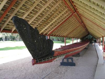 Kriegskanu aus zwei Kauristaemmen - wird heute noch fuer rituelle Veranstaltungen genutzt.