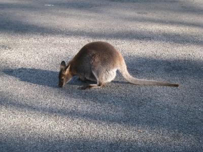 Im Nationalpark angekommen haben wir uns den Cradle Mountain (vom Parkplatz) angeschaut und auf dem Rueckweg zum Campground die ersten Wombats und Wallabies gesehen. (beides Beuteltiere)
