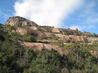 Am naechsten Tag sind wir dann quer durch Tasmanien an die Ostkueste nach Coles Bay gefahren. Abends kurzer Abstecher zu den Friendly Beaches und am naechsten Tag ... naechster Berg ... Aufstieg auf den Mount Amos mit Blick auf die Wineglass Bay - natuerlich wieder POSTKARTENWETTER !!!