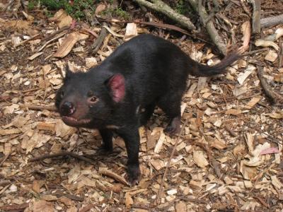 Ach ja - was waere Tasmanien ohne den Tasmanischen Teufel. Im Cradle Mountain National Park haben wir ihn schon in der Wildnis gesehen. Da man diese nachtaktiven Tiere nur schwer ohne Blitz fotografieren kann haben wir das im Tasman Devil Recreation Center erledigt. Dort konnten wir auch bei der Fuetterung hoeren was die Devils so mit Wallabieknochen anstellen koennen.