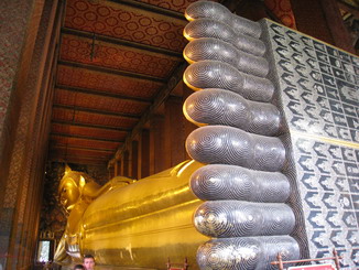 Suedlich davon befindet sich Wat Po, mit dem groessten Buddha Thailands. dem Reclining Buddha (45 m lang, 15 m hoch)
