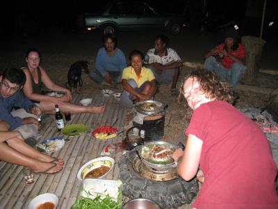 Abends wurden wir dann von Phot mit dem Pickup Truck abgeholt. Im Camp leben Phot mit seiner Freundin und seiner kleinen Tochter Arie. Gemeinsam mit uns waren noch zwei Australier (Ben und Vie) und einen Tag spaeter noch zwei Englaenderinnen (Helen und Rachel) im Camp.